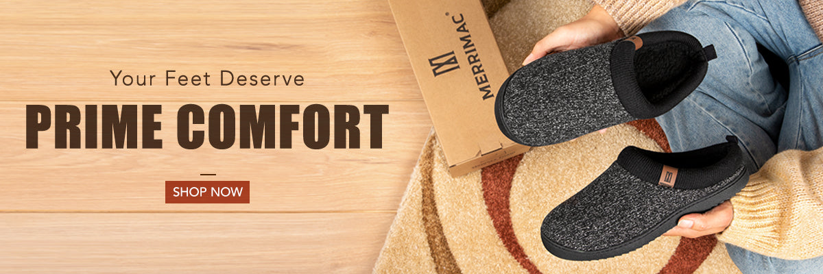 MERRIMAC Men's Comfy Wool Like Knit Memory Foam Slippers